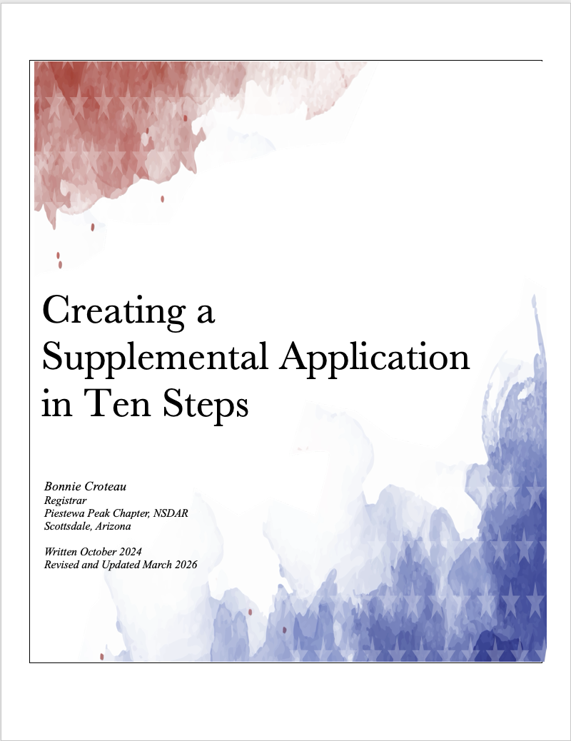 The Supplemental Application manual provides step-by-step instructions for completing a DAR supplemental application for a verified Patriot. First created in October 2024, the manual was revised and updated in March 2026 to reflect updates in the DAR Genealogy Guidelines and the DAR member’s website